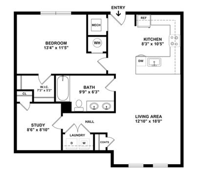 Sherwood Apartment Homes' community features a diverse mixture of layouts for residents to choose from. Choose from a variety of one-bedroom and two-bedroom homes with optional studies.